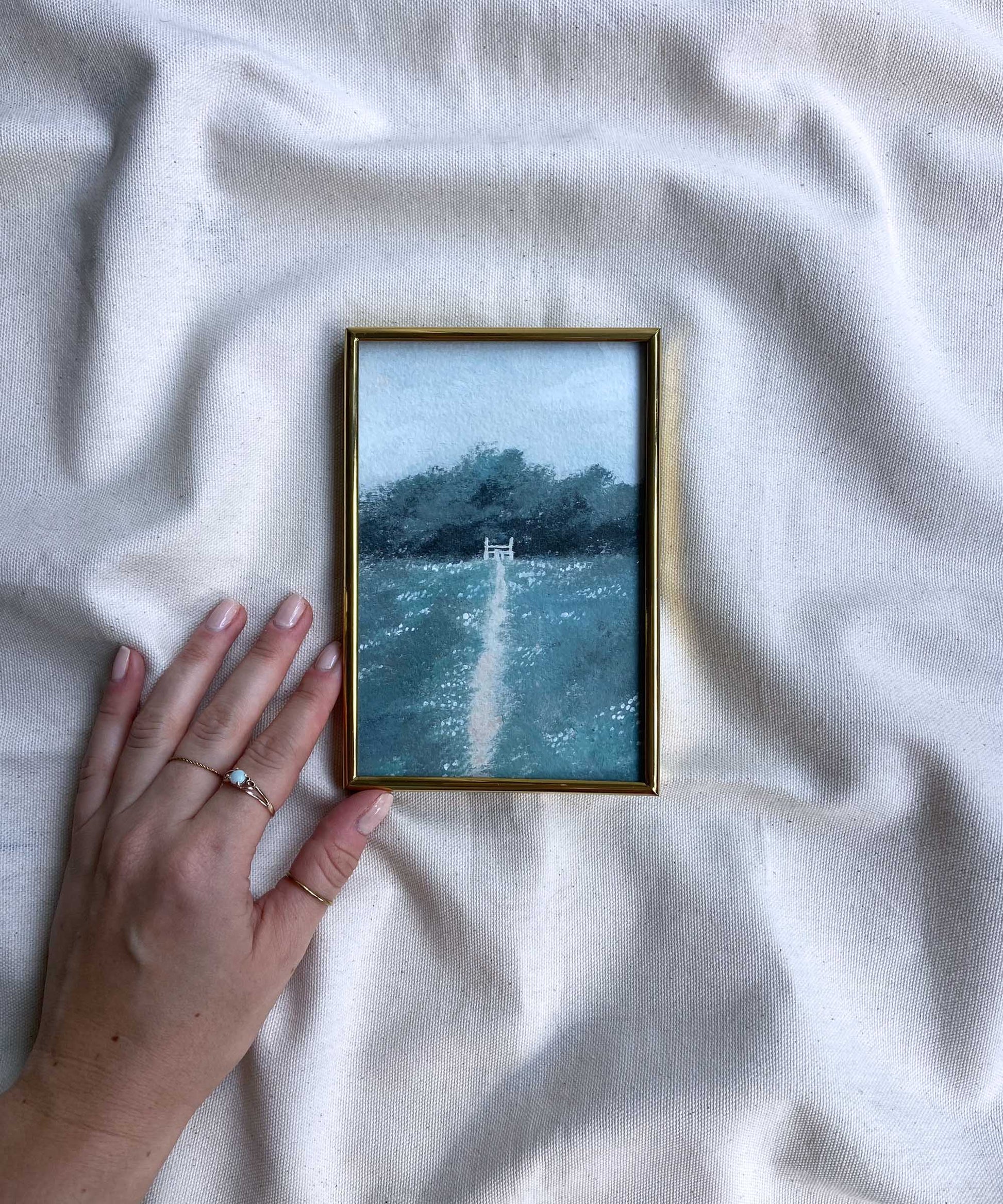 My art prints are reproductions of my original paintings, printed onto high-quality, 300 gsm textured paper. I carefully source each frame second-hand, giving new life to old things.